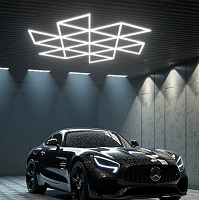 JYD-HGL-0036F Deformable LED Linear High Bay Lamp Hanging Hexagon Detailing LED Home Hexagon Modular Canopy Working Garage Light